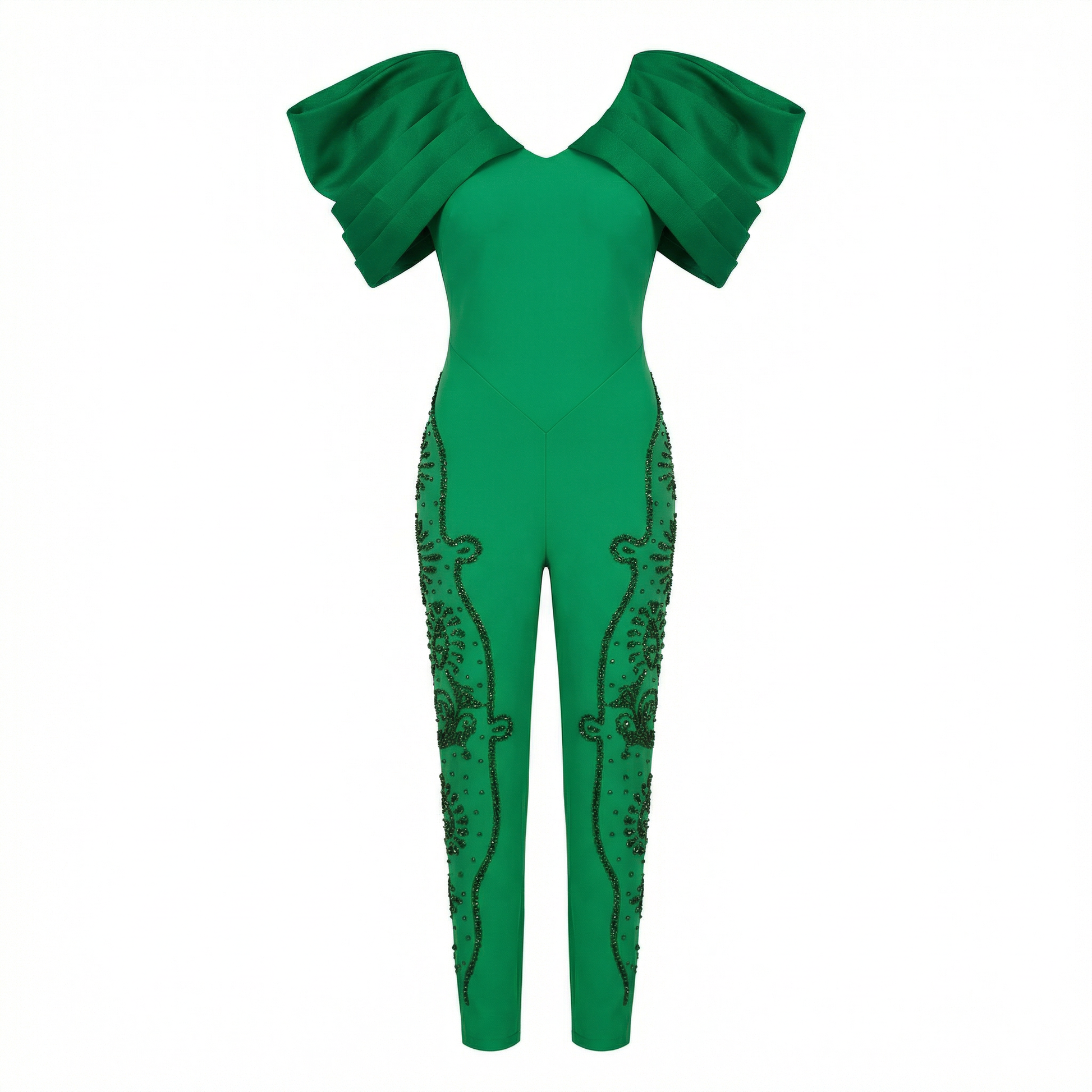 Make a bold statement in this vibrant green spandex jumpsuit, designed for those who embrace contemporary fashion with confidence. The stretchy, form-fitting fabric moves with your body, offering both comfort and a sleek silhouette. Perfect for evening events, performances, or fashion-forward occasions, this piece combines modern aesthetics with practical wearability. The seamless construction ensures a polished look from every angle, while the rich green hue flatters a variety of skin tones. An essential addition to any style-conscious wardrobe.